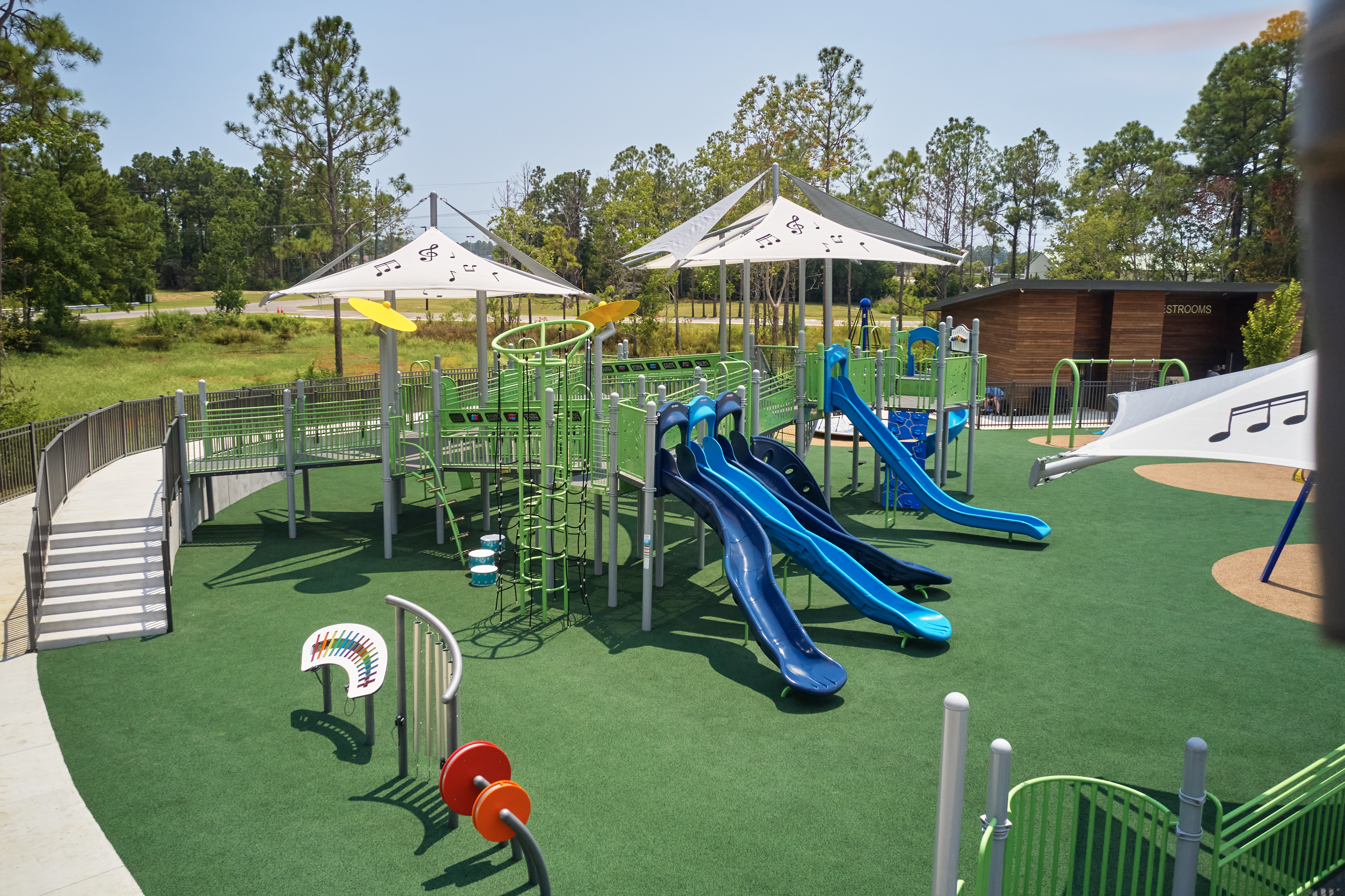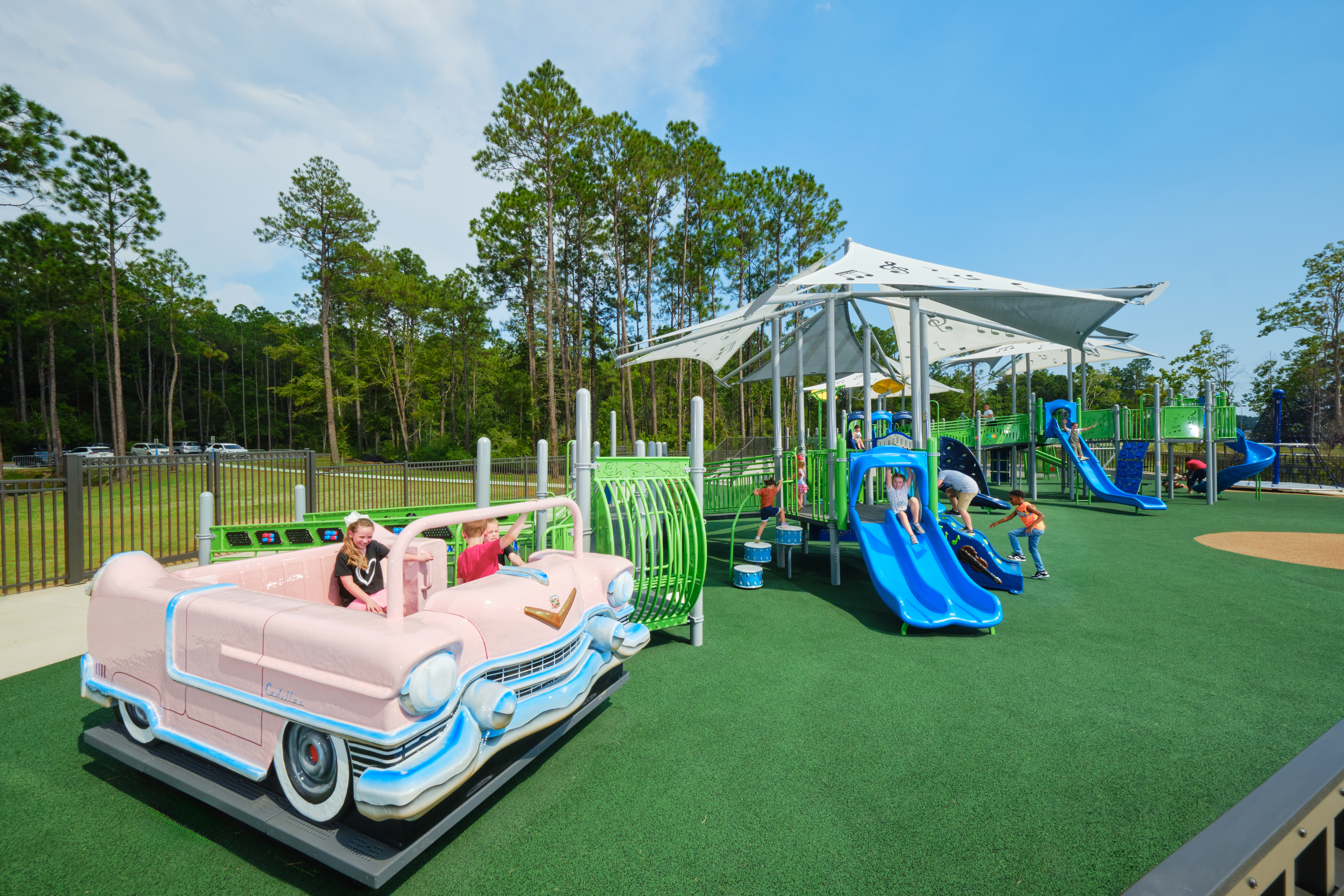 This Unlimited Play playground was thoughtfully designed to provide children of all abilities and disabilities with opportunities to play together, learn, and have fun in a safe and accessible environment, this playground will be a significant addition to Gautier. It is the only inclusion park of its scale in the entire state of Mississippi, setting a new standard for inclusive play areas in the state. Located by the Sound Amphitheater, the park’s music theme creates a blend of recreation and culture.